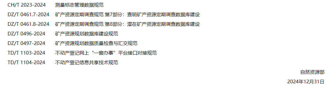 自然資源部關(guān)于發(fā)布《測量標(biāo)志管理數(shù)據(jù)規(guī)范》等7項(xiàng)行業(yè)標(biāo)準(zhǔn)的公告