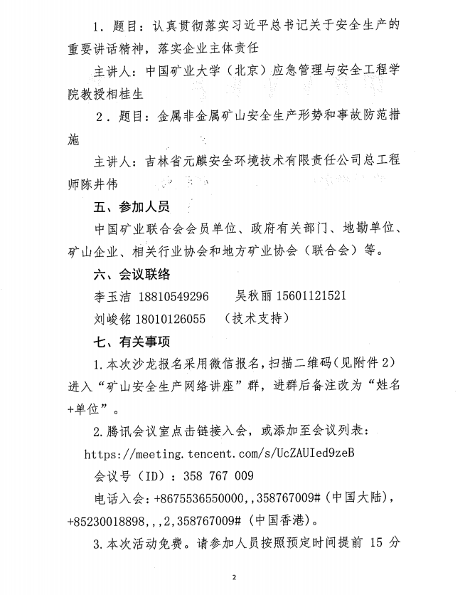 為貫徹落實黨中央、國務院關(guān)于安全生產(chǎn)的重大決策部署,牢固樹立安全發(fā)展理念,以防范化解重大風險、及時消除安全隱患、有效遏制生產(chǎn)安全事故,中國礦業(yè)聯(lián)合會擬于近期開展“礦山安全生產(chǎn)網(wǎng)絡講座”活動。有關(guān)事項通知如下: