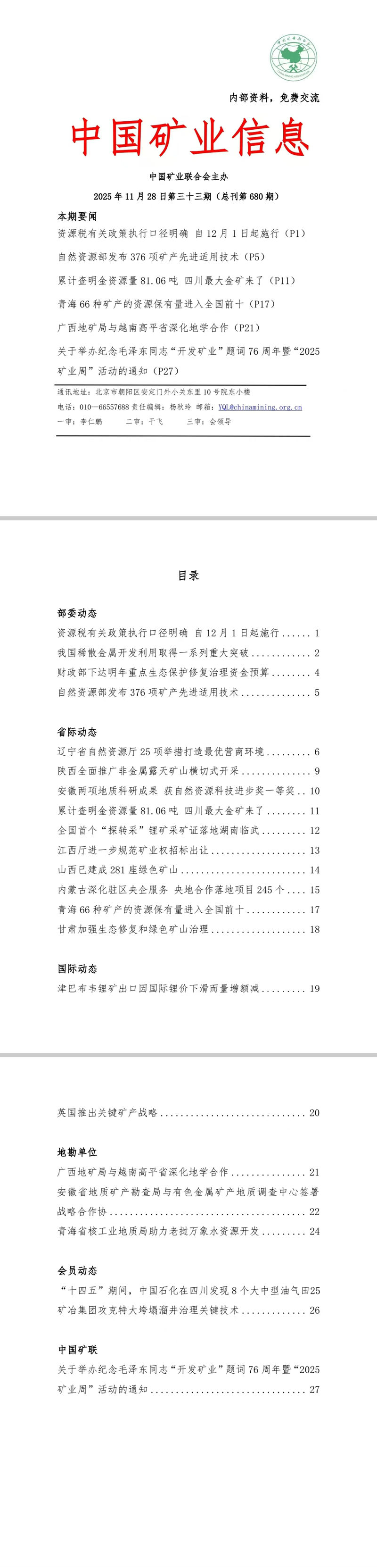 2025年11月24日—11月28日《中國礦業(yè)信息》第三十三期(總刊第680期)