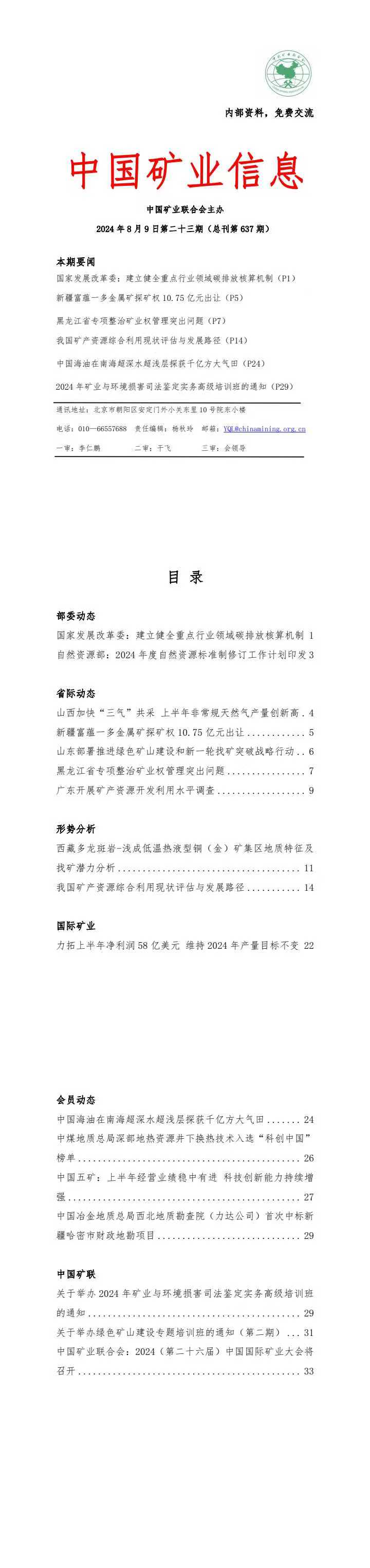 中國礦業(yè)網(wǎng):2024年8月5日—8月9日《中國礦業(yè)信息》第二十三期