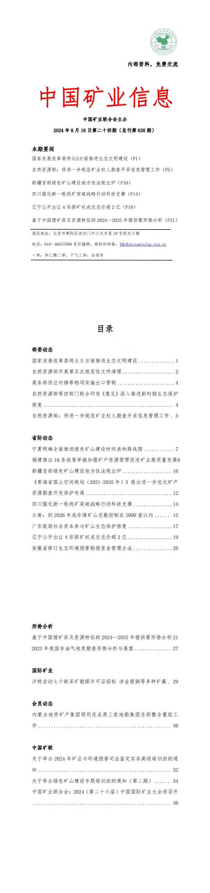 中國礦業(yè)網(wǎng):2024年8月12日—8月16日《中國礦業(yè)信息》第二十四期