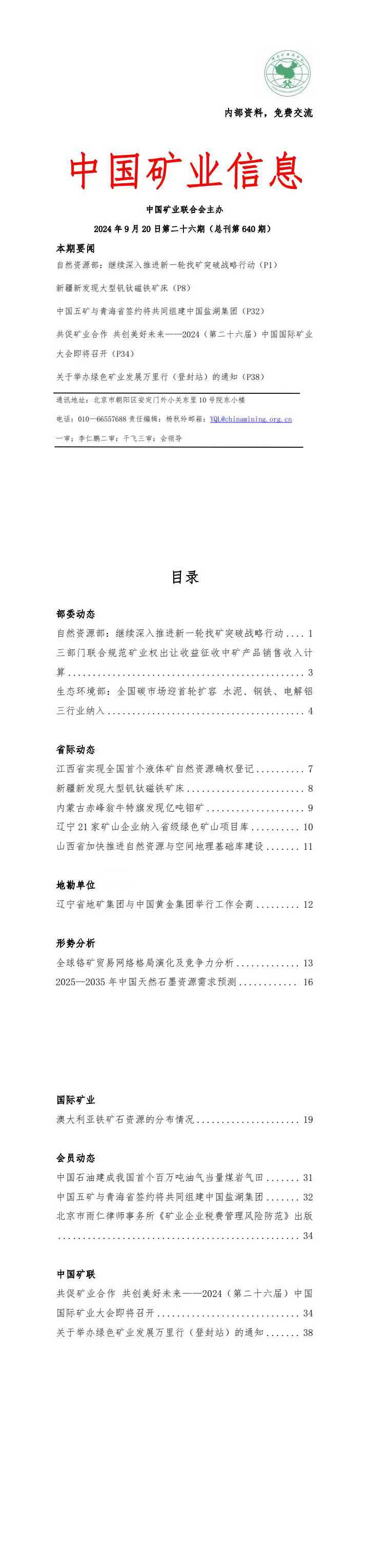 中國礦業(yè)網(wǎng):2024年9月16日—9月20日《中國礦業(yè)信息》第二十六期