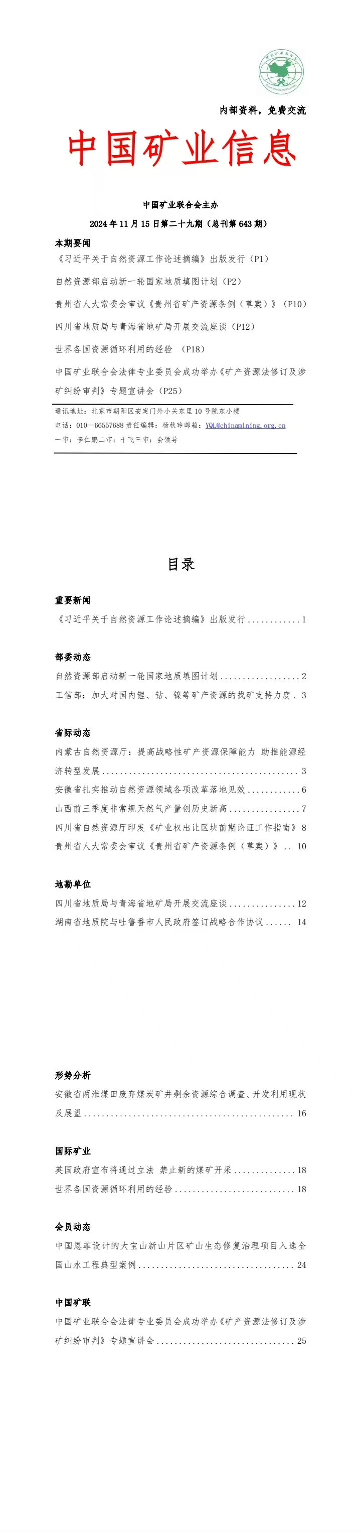 中國礦業(yè)網(wǎng):2024年11月11日—11月15日《中國礦業(yè)信息》第二十九期