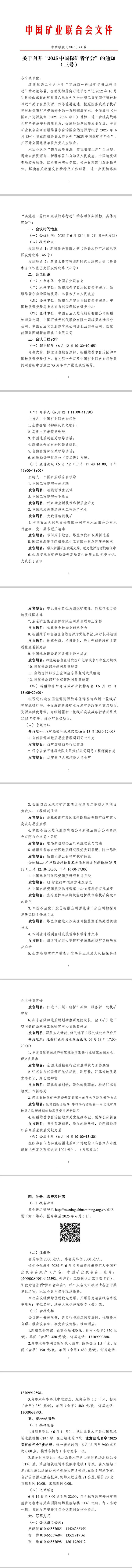 遵照黨的二十大關于“實施新一輪找礦突破戰(zhàn)略行動”的決策部署,全面貫徹落實習近平總書記2022年10月2日給山東省地礦局第六地質(zhì)大隊全體職工重要回信精神和習近平關于自然資源工作等重要論述,按照國務院關于找礦突破和保障礦產(chǎn)資源安全的一系列部署要求,全面履行《全國礦產(chǎn)資源規(guī)劃(2021-2025年)》目標,進一步提高戰(zhàn)略性礦產(chǎn)資源安全保障能力,促進地勘單位高質(zhì)量發(fā)展。中國礦業(yè)聯(lián)合會商新疆維吾爾自治區(qū)自然資源廳擬于2025年6月12-14日在新疆烏魯木齊召開“2025中國探礦者年會”,并召開全國地勘單位負責人座談會。