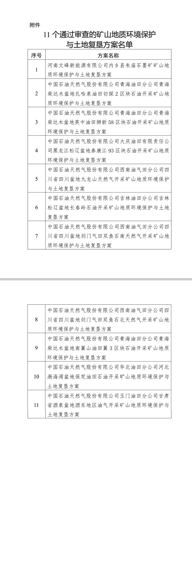 自然資源部關(guān)于河南文峰新能源有限公司內(nèi)鄉(xiāng)縣朱廟石墨礦等11個礦山地質(zhì)環(huán)境保護與土地復墾方案通過審查的公告