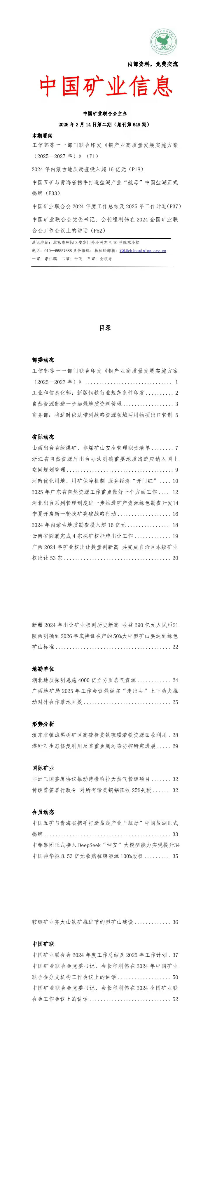 中國礦業(yè)網(wǎng):2025年2月10日—2月14日《中國礦業(yè)信息》第二期