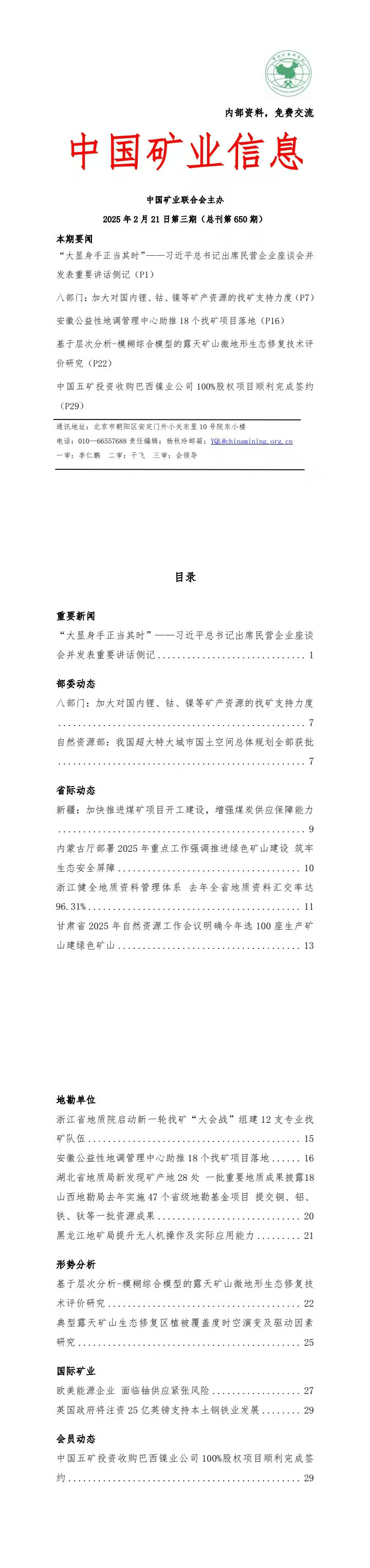 中國礦業(yè)網(wǎng):2025年2月17日—2月21日《中國礦業(yè)信息》第三期