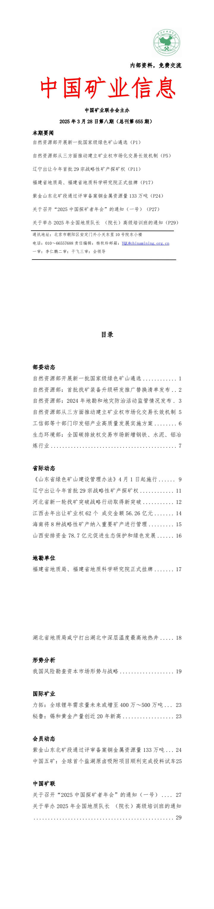 中國(guó)礦業(yè)網(wǎng):2025年3月24日—3月28日《中國(guó)礦業(yè)信息》第八期