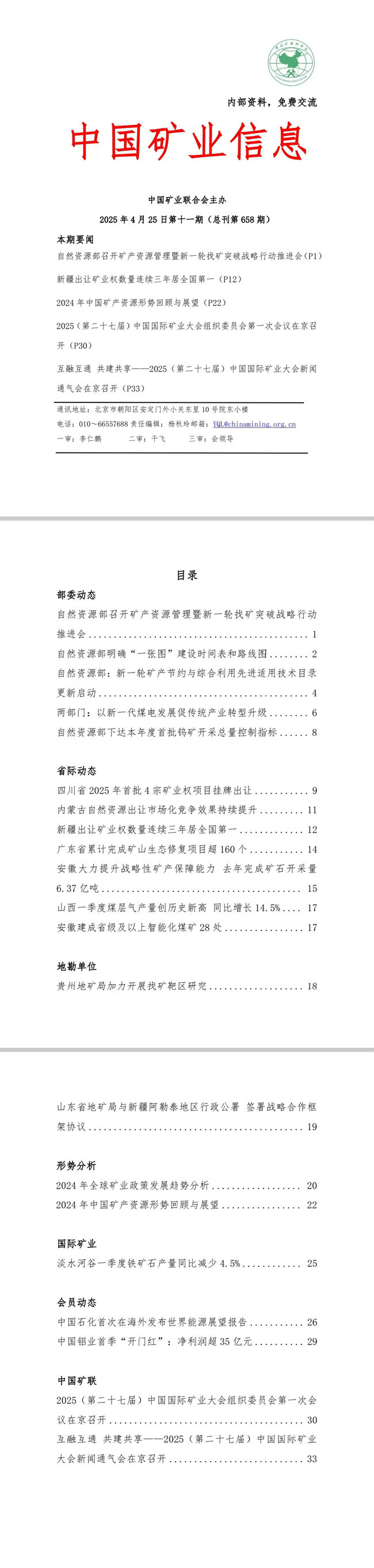 2025年4月21日—4月25日《中國礦業(yè)信息》第十一期(總刊第658期)