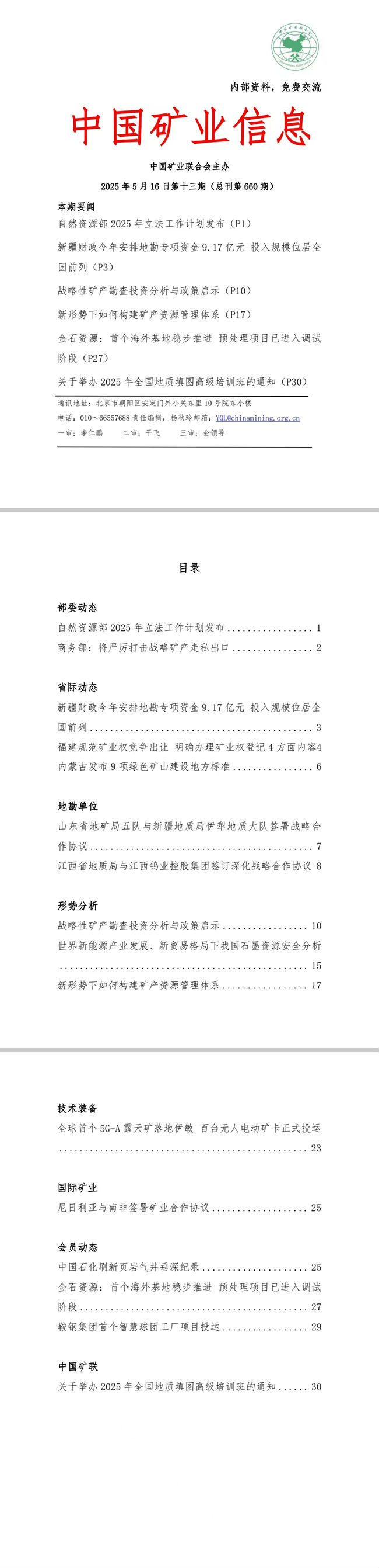 2025年5月12日—5月16日《中國礦業(yè)信息》第十三期(總刊第660期)