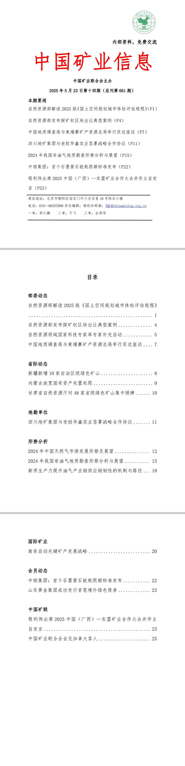 2025年5月19日—5月23日《中國礦業(yè)信息》第十四期(總刊第661期)