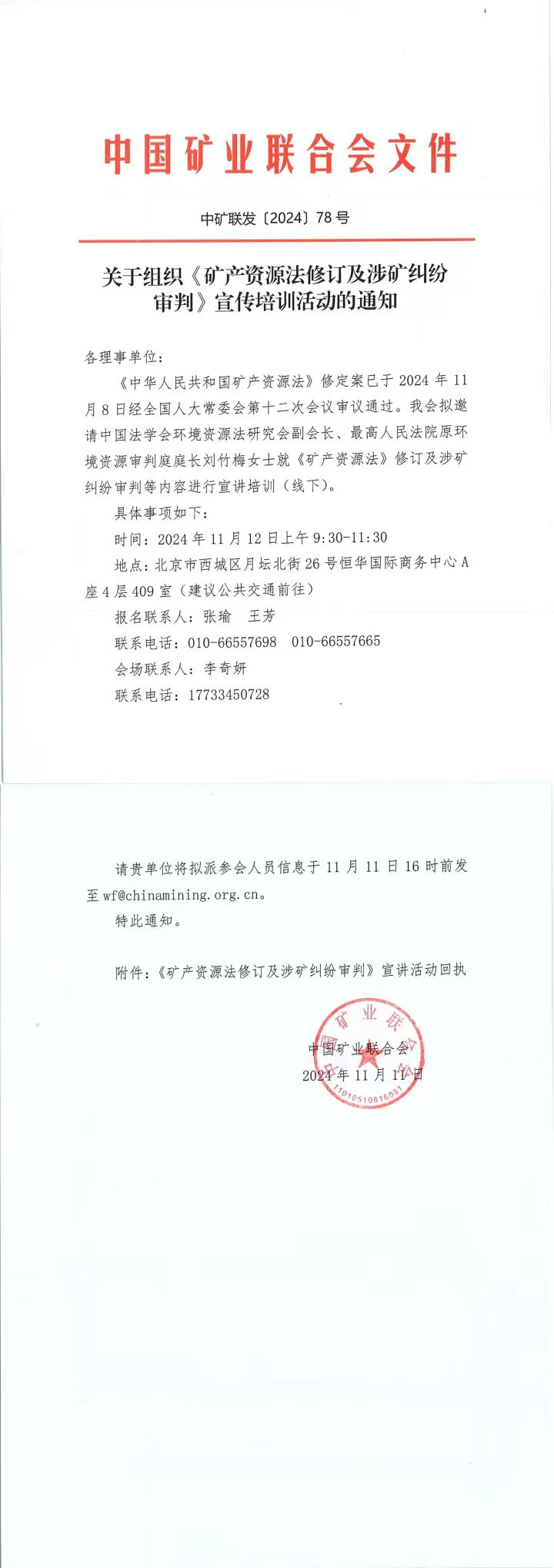 關(guān)于組織《礦產(chǎn)資源法修訂及涉礦糾紛審判》宣傳培訓(xùn)活動(dòng)的通知