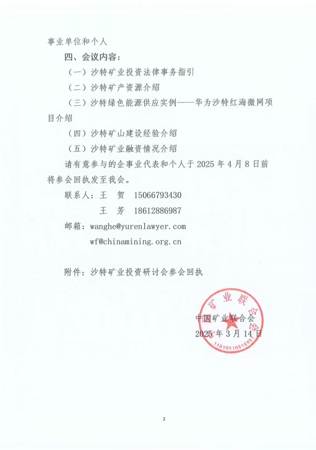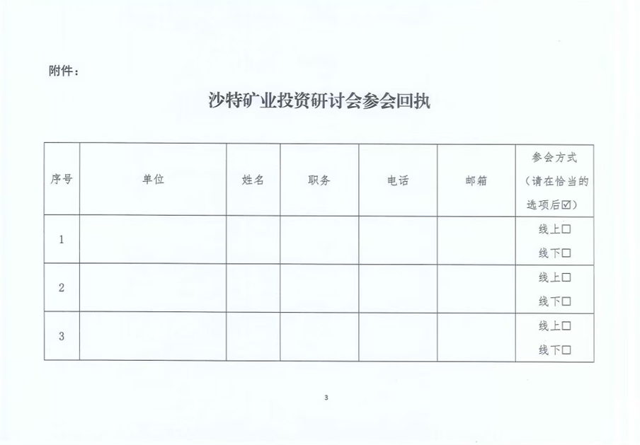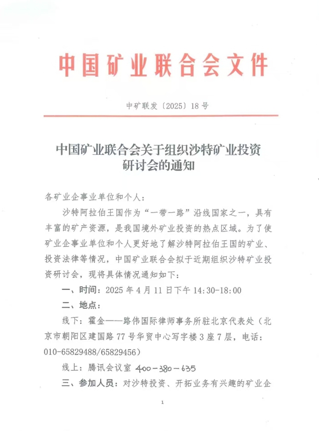中國礦業(yè)聯(lián)合會關于組織沙特礦業(yè)投資研討會的通知
